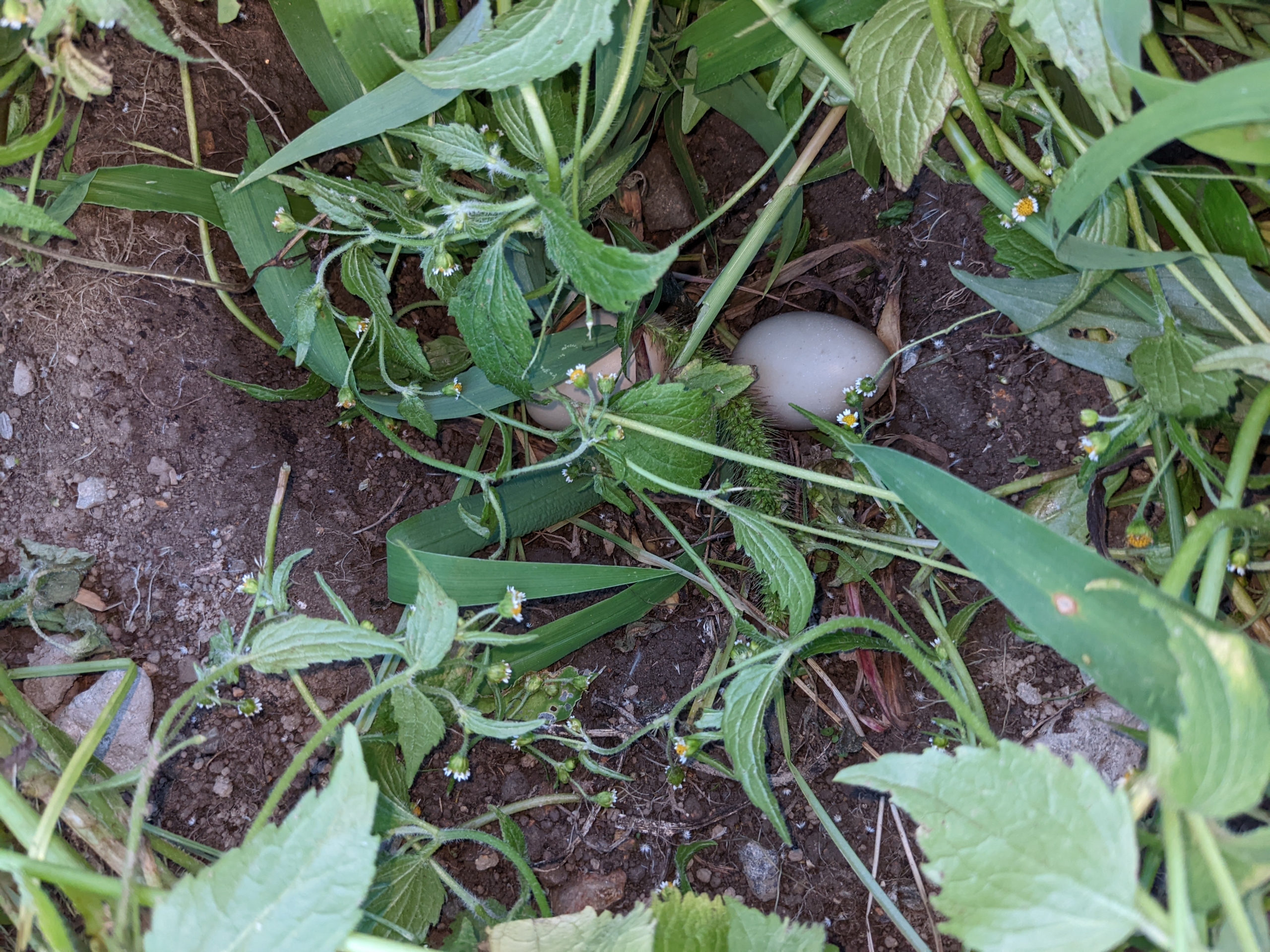 草刈りをしていてキジの巣を見つけました。暖めているのか、放棄したものかは分かりませんが、周りの草を刈ってしまったので、暖めていたとしてもだめかなと思います。2個産んでいました。