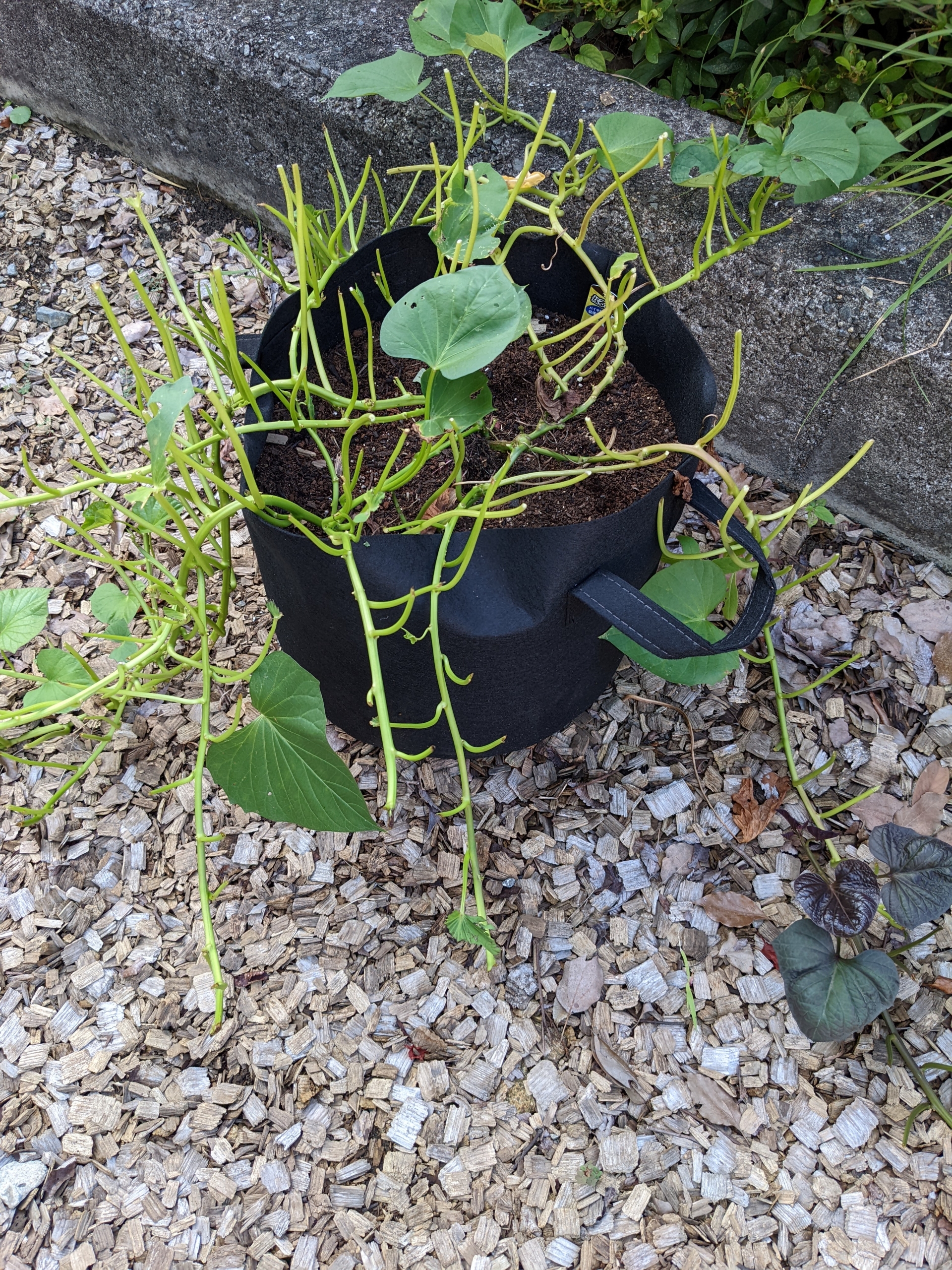 プランターの獣害2022年8月12日 プランターのサツマイモ、サトイモの葉がシカ?かイノシシ?に食べられました。 サツマイモが食べられるかと気を揉んでいましたが、はっぱをやられました。葉はまた出てくるかなあと思いますが、収穫は、植えてから4か月ということであれば、10月の初めころっぽいですので、まだまだ成長するはずです。畑のサツマイモよりツルが伸びていますし、少し葉が黄色くなっていたので、肥料をやってからよく成長しているように思います。どのくらいのイモができているのか気になるところですが、もう少し様子を見てみます。 プランター栽培Posted by sonoda