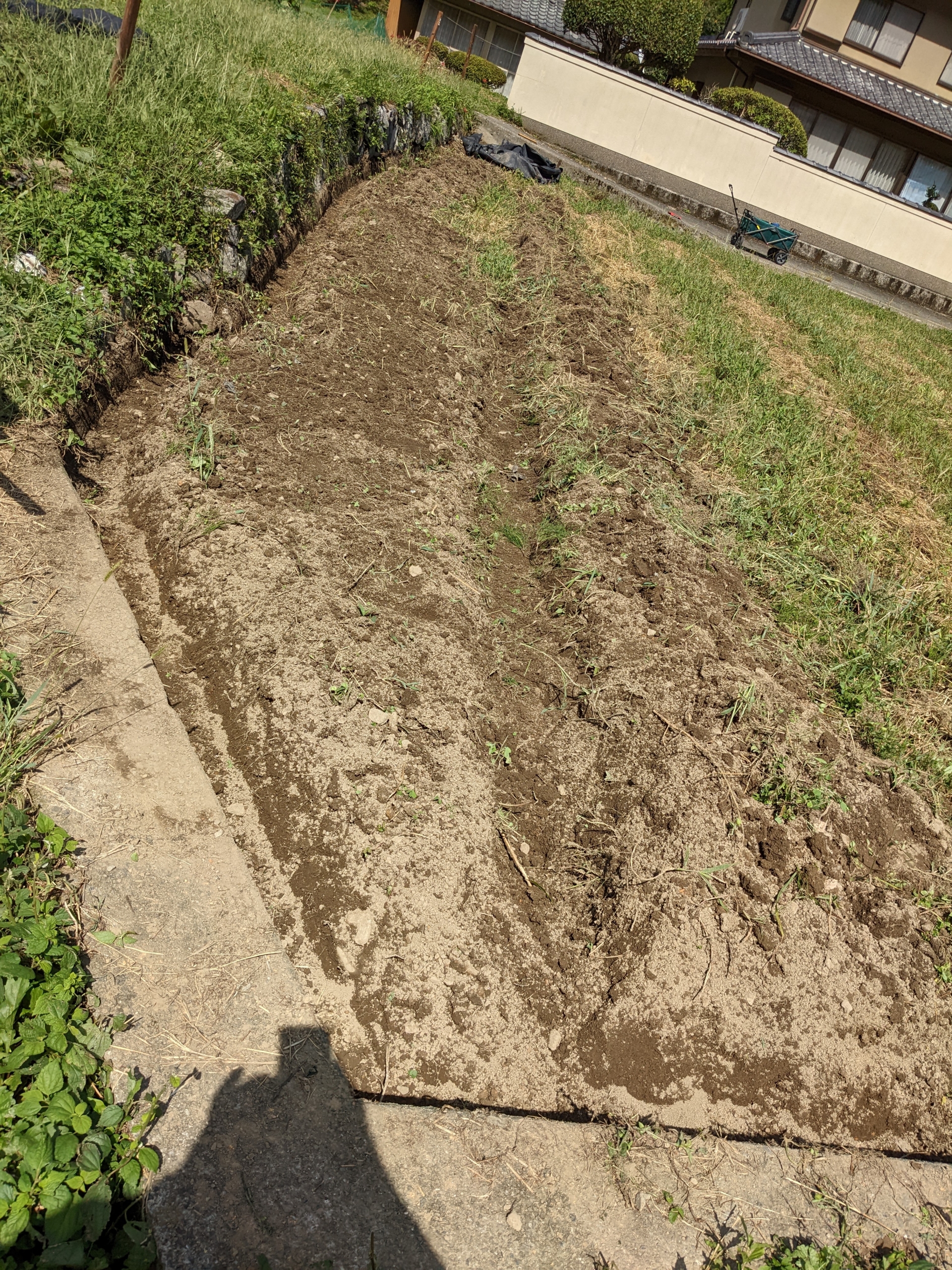 ほとんど耕さずに溝の土が上に載っている感じです。じゃがいもは「ニシユタカ」にしました。どの程度できるかが楽しみです。