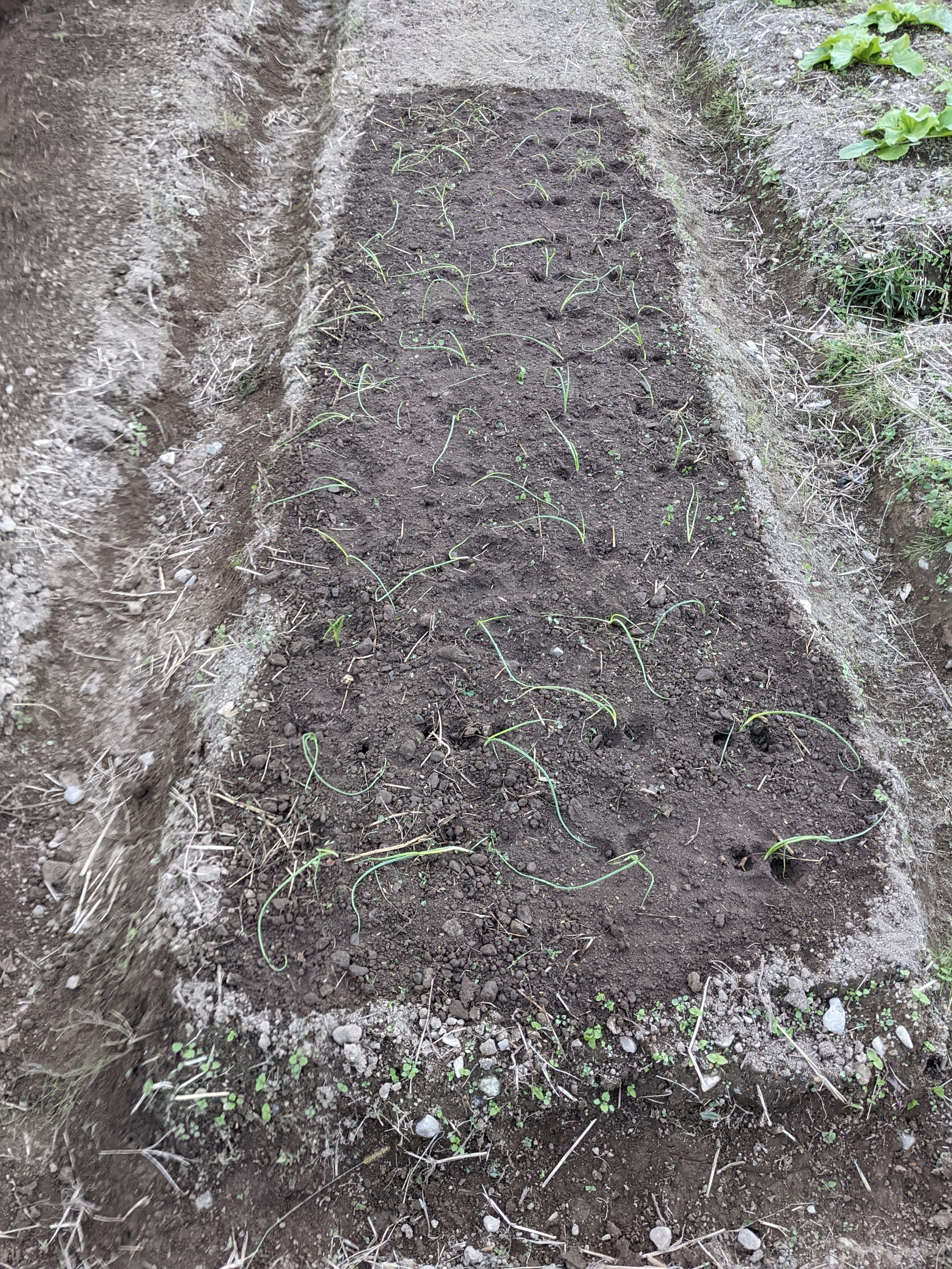 前に植えたキャベツ、白菜、ブロッコリーは大きくなっています。ニンニクも芽が出てきました。