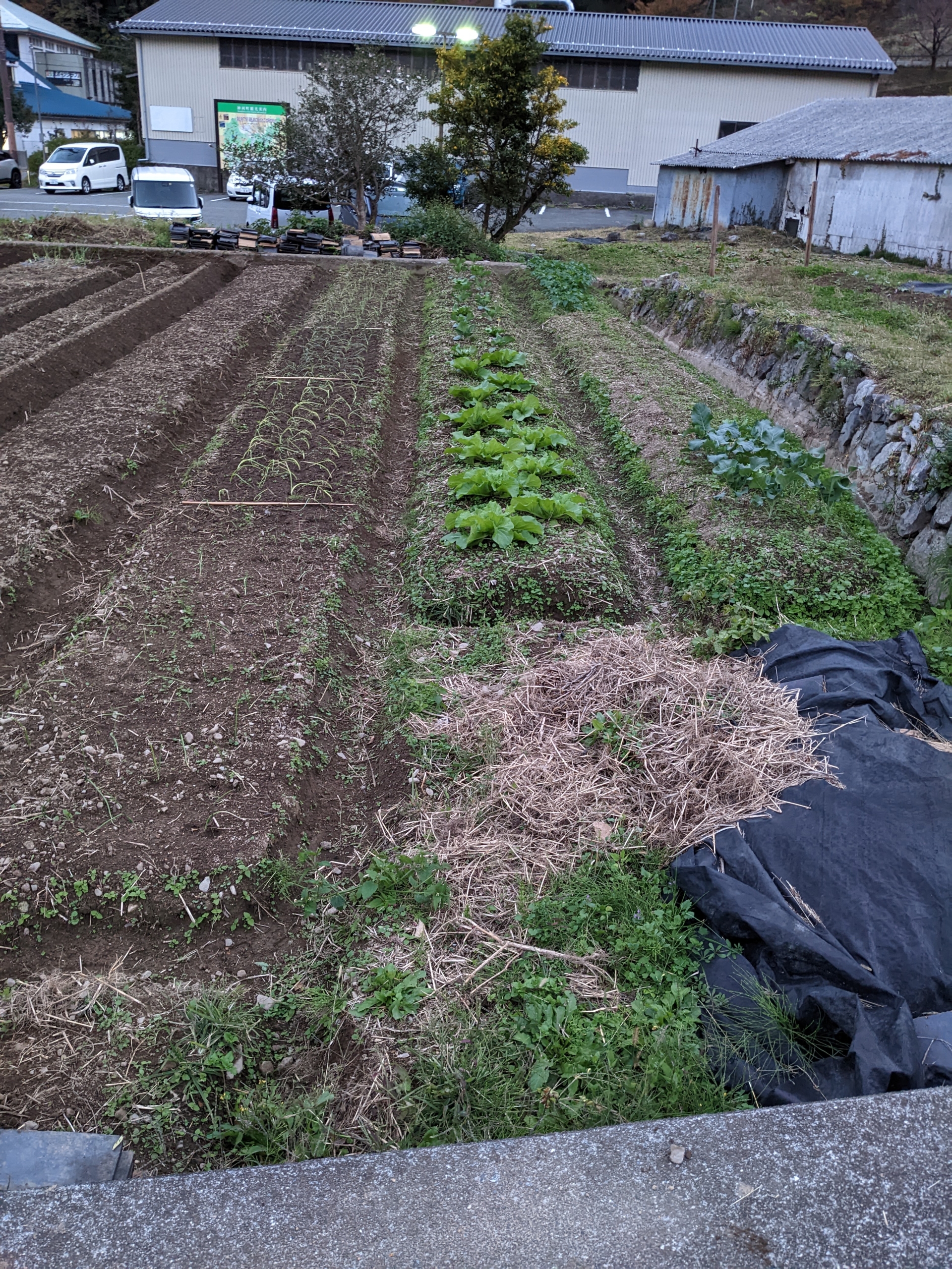 秋に植えた、ジャガイモ、ニンニク、キャベツ、白菜、ブロッコリー、レタスは順調にそだっている様に思います。ジャガイモは、ほとんど何も植えていなかった所で、耕さずに植えてみました。上に有機肥料を少しだけ巻いたのですが、濃い緑でそれなりに成長しているように思います。