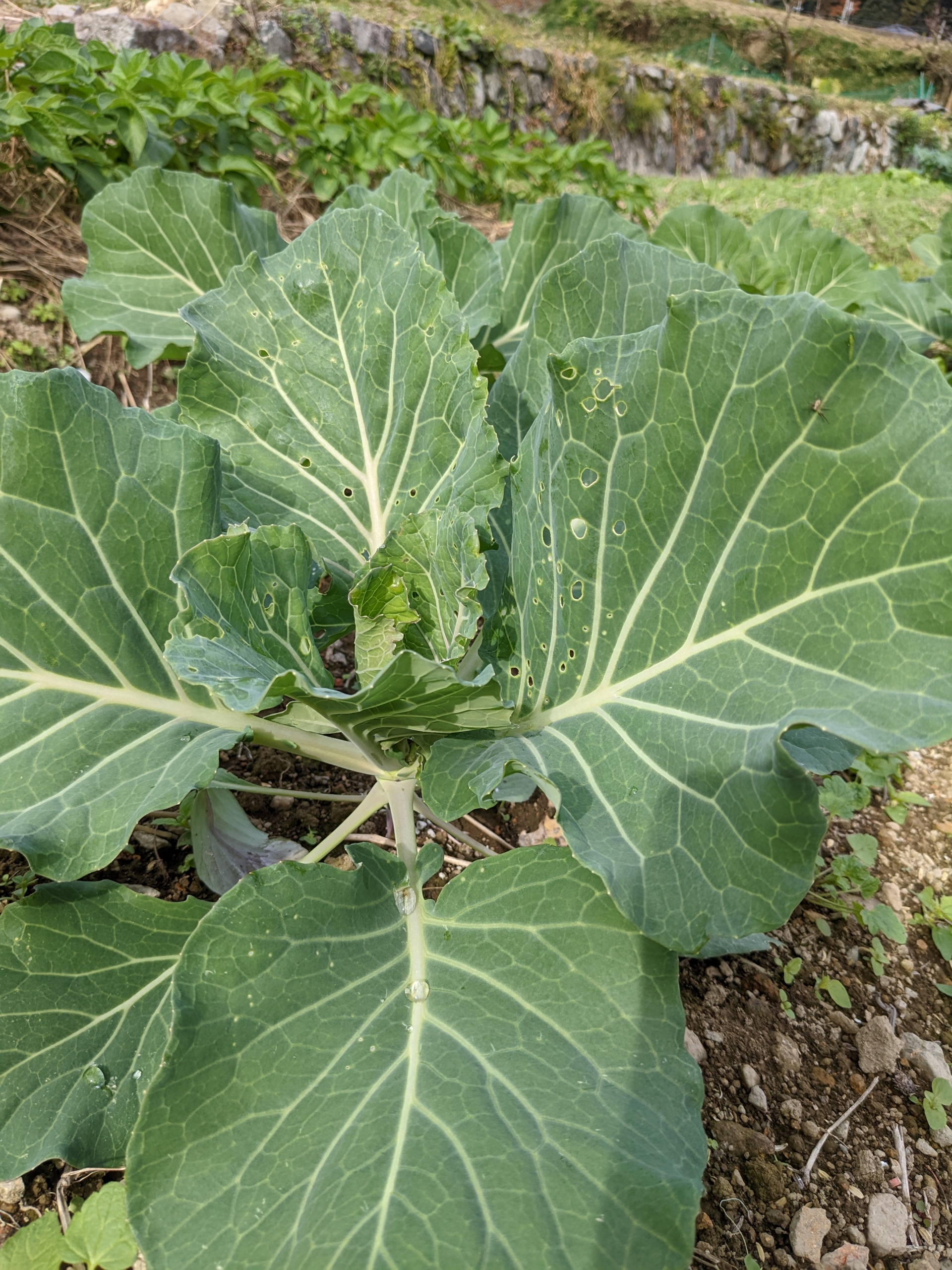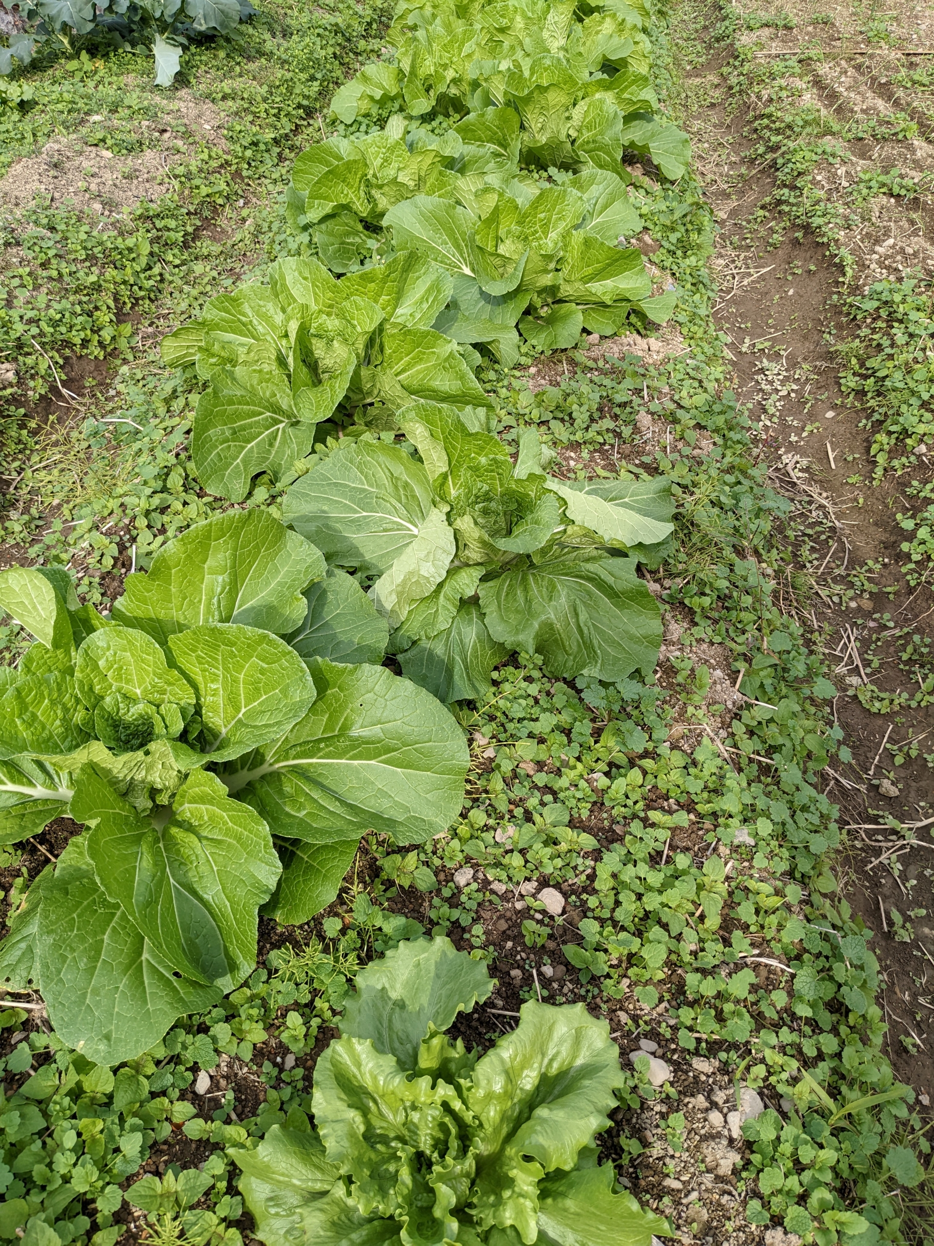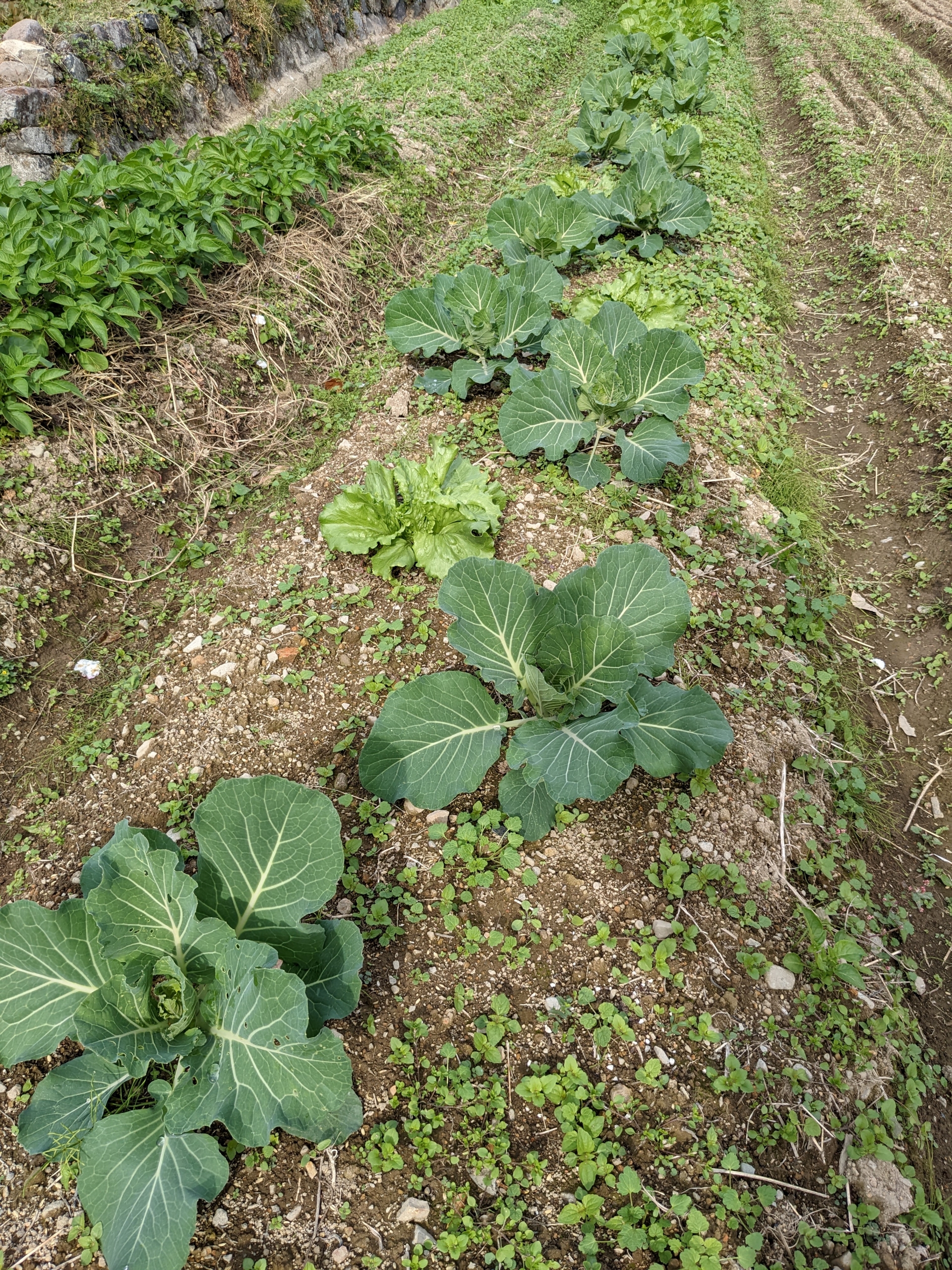 刈り取った草はジャガイモに少し引いていましたが、全体に広げて、ブロッコリーの所にも引いてみました。草が生長してきていたので、少し引いた上に草をおきましたのでどうなるかが楽しみです。キャベツ、白菜、レタス、ブロッコリーは虫にもほとんど食われず大きくなってきています。非常に順調のように思います。