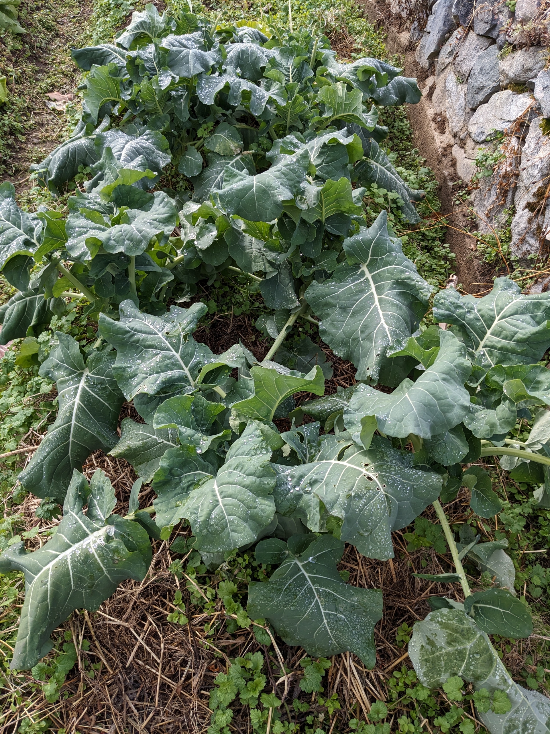 シカ?にブロッコリーの葉を少し食べられていました。